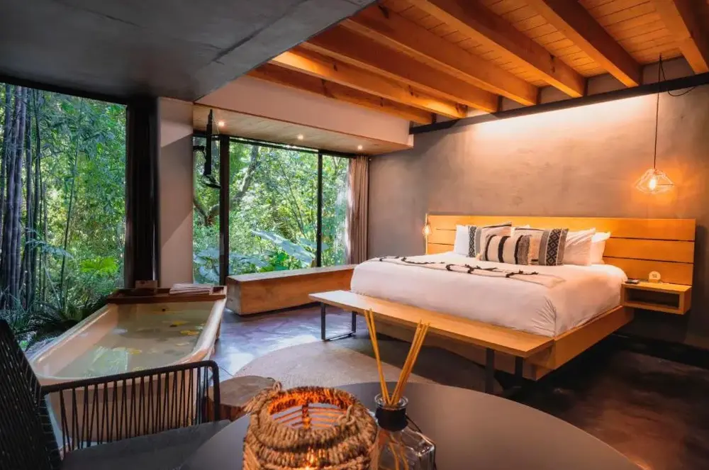 Mais Informações sobre Habitación con vista al lagoO El Lugar del que te hale Hotel Boutique oferece uma experiência única com instalações impecáveis e um serviço de alta qualidade. Localizado em Vega del Valle S/N, 51200 Valle de Bravo, México, o estabelecimento conta com diversas opções de lazer e conveniência, incluindo piscina ao ar livre, restaurante e área de bar.